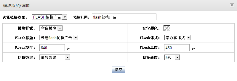 添加一个模块,模块类型选择flash轮换广告