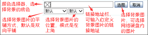 第一个下拉框:设置图片的平铺方式,默认为双向平铺,(可选横向平铺,纵向平铺,不平铺)