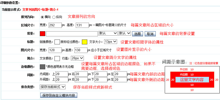 简介:设置文章简介文字的属性 边框颜色:标每篇文章边框的颜色,如果不需要边框,选择透明色