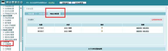 那么左侧要怎么修改呢,首先您进入网站后台中,在左侧的功能列表中找到 文章管理》文章配置