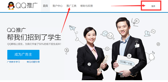 如图:登陆您要使用的QQ,然后点击推广工具。