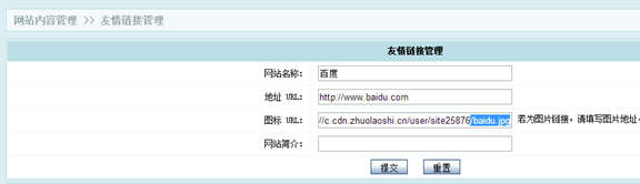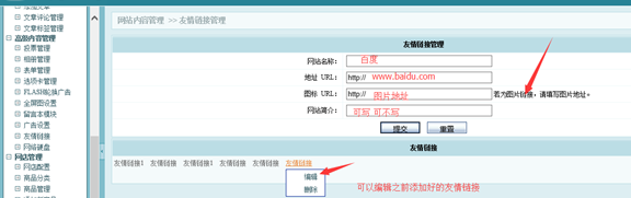 首页,您进入网站后台管理中心,高级内容管理》友情链接