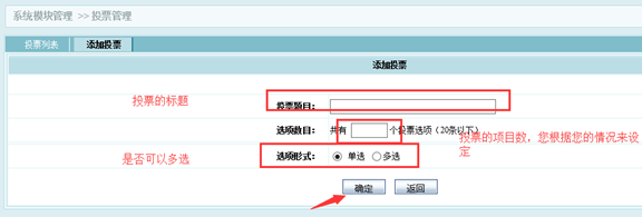在这里您可以添加多个投票项目,并且对每个投票项目可以设置N多选项。
