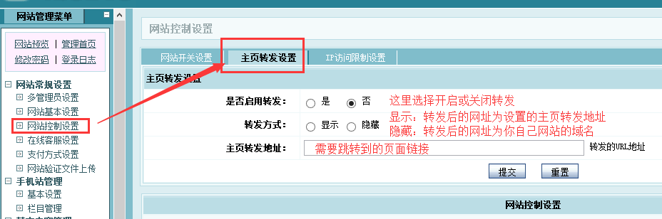 网站控制设置》主页转发设置
