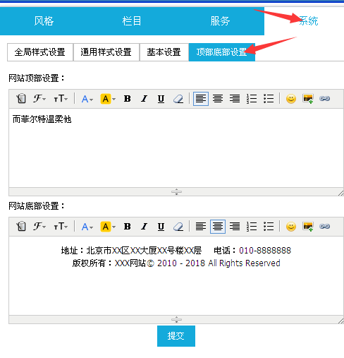 添加顶部和底部的图片 设置好后您直接在后台进行浏览的 如图