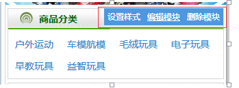 在模块的右上角 点鼠标后会出现 编辑模块 ,设置样式 删除模块 等操作