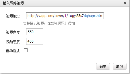 编辑器最后一项为添加视频,点击后输入视频的网址即可